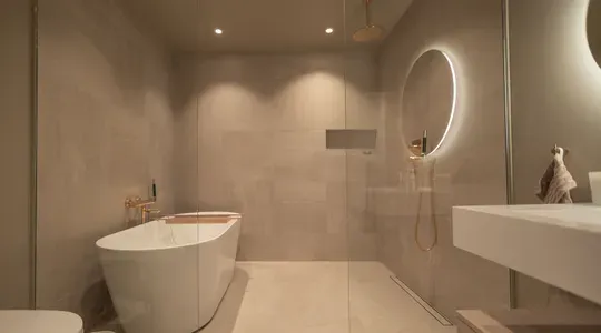 På badet er downlights ideelle for å gi et rent, moderne uttrykk. Ved å plassere dem riktig kan du unngå skygger i speilområdet og samtidig skape en behagelig atmosfære.