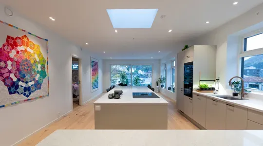 ✔ Tips: Bruk downlights med en litt kjøligere hvitfarge (3000K) over arbeidsområdene for god fargegjengivelse, og kombiner med dimbare varianter for å skape en koselig stemning på kvelden.